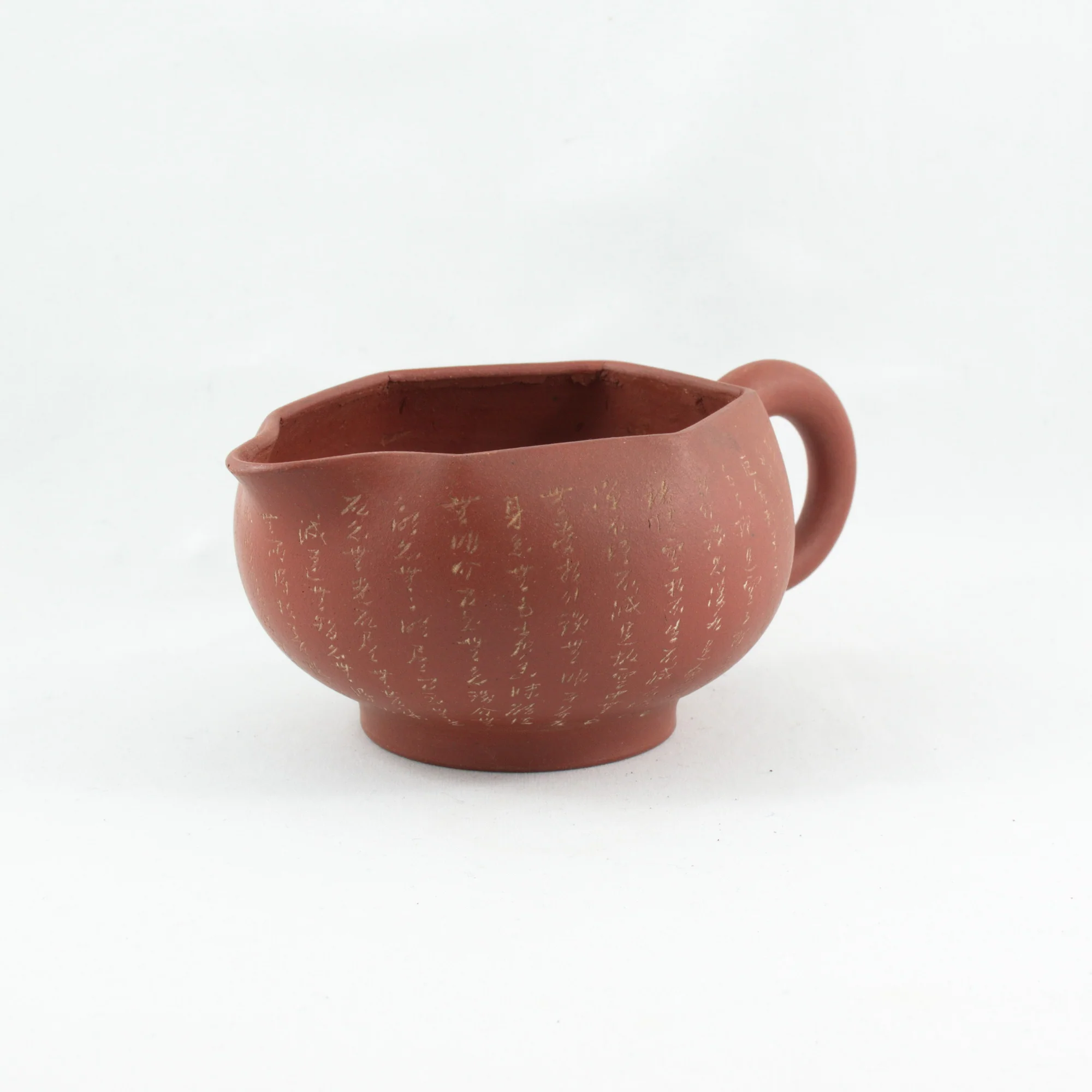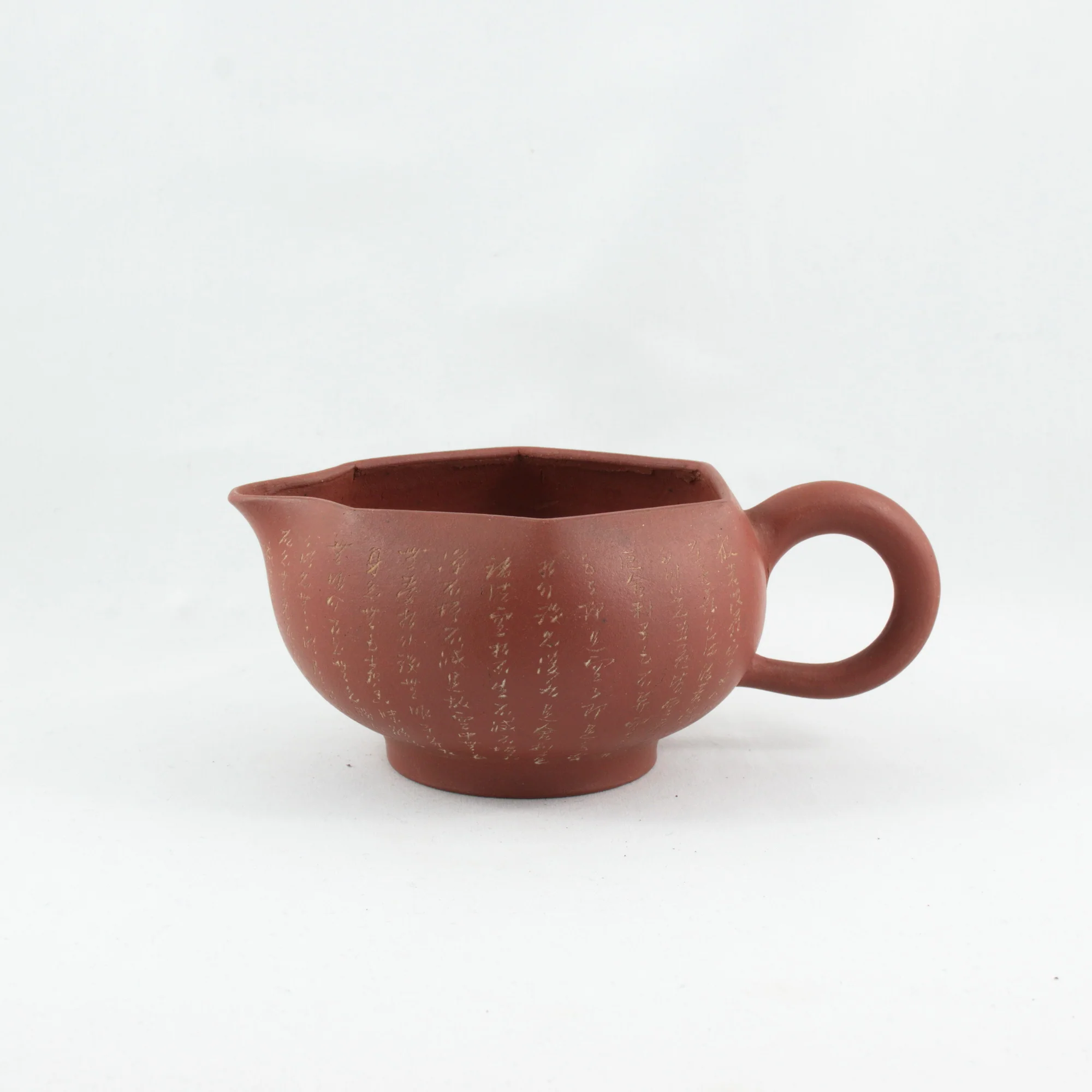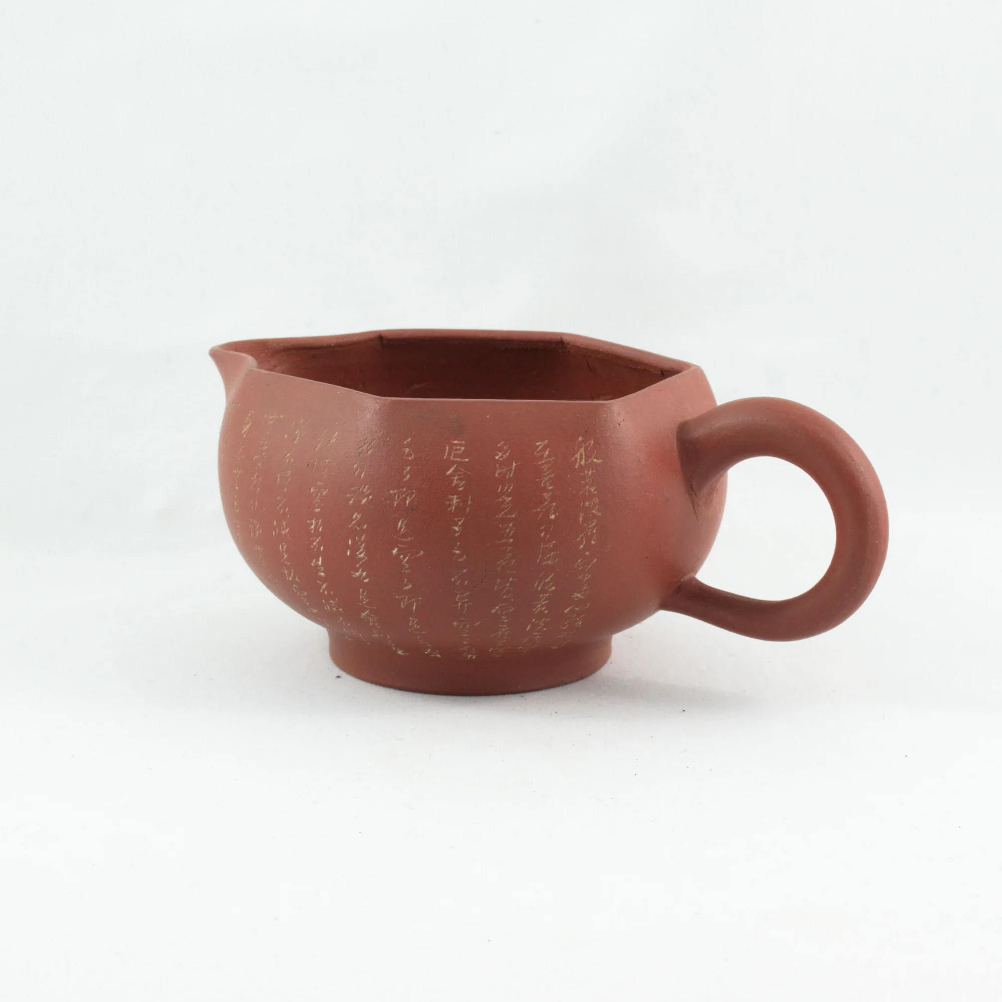 Antique Yixing Neizi Waihong Heptagon Fair Cup Pitcher With Buddha Heart Sutra